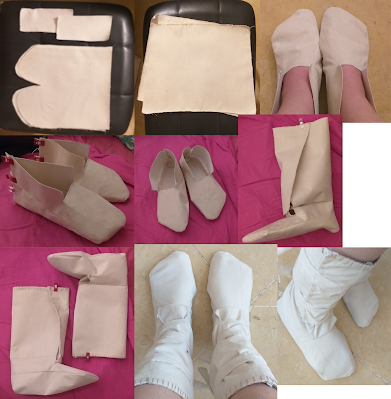 In my first San costume I wore uggs, but I decided to try making my own boots. This is the same faux suede material that I used for the apron. I used two tutorials for guidance: